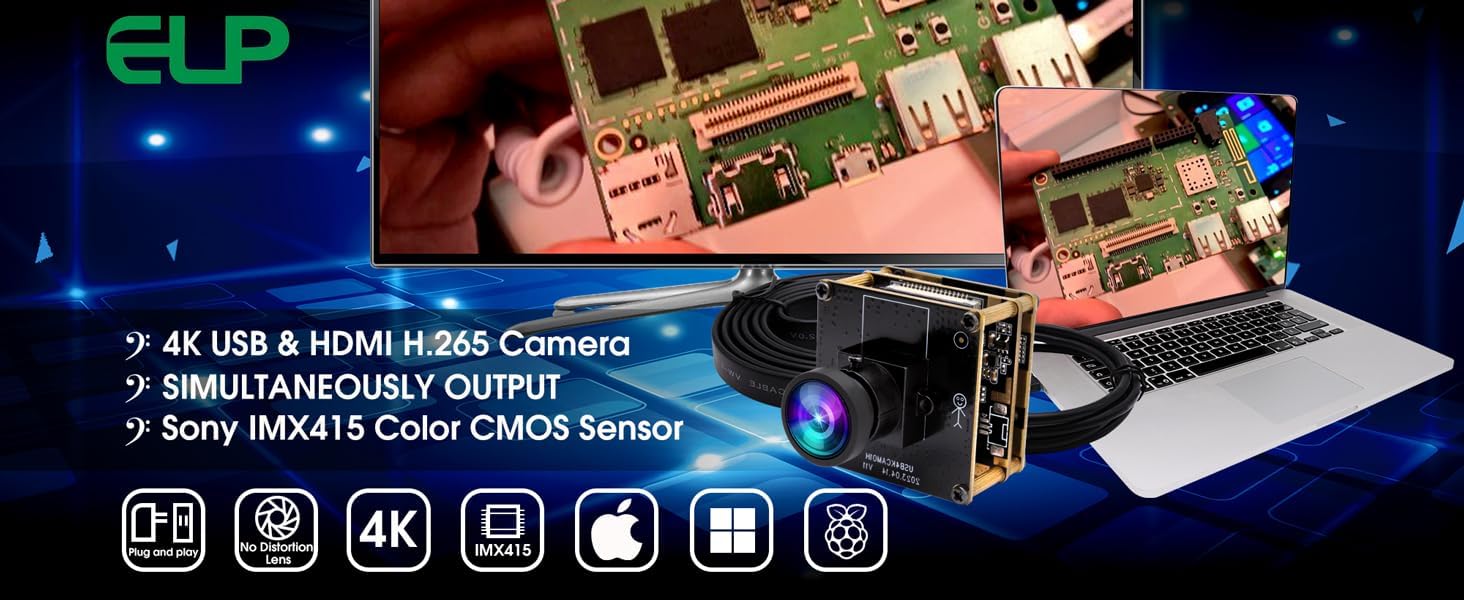 | Features | 4K USB & HDMI camera, simultaneous output., 4k ultra clear max 3840*2160@30fps, camera with UVC for computer, laptop, pc, raspberry pi, Jetson Nano, mini size, light weight, 2X digital zoom., wide angle low distoriton lens, HFOV about 120-125degrees. |