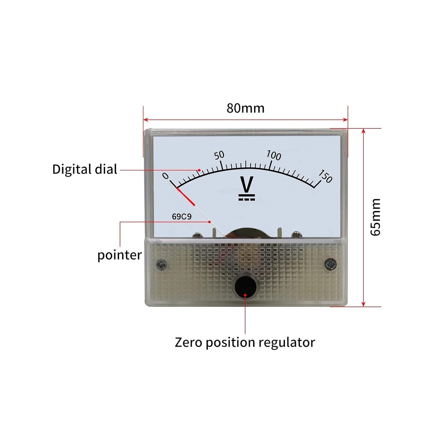 About this item[Main Parameter] - Model: 69C9/69L9 DC/AC ; Measurement Range: 1v-800v, Accuracy of Class: 2.5[Material] - Transparent plastic shell is convenient for you to read scale quickly[Size]- Meter Panel(Approx): 65x80x60mm(L*W*T)[Appalication] - Needle voltmeter panel meter is great for replacing broken meter, monitoring a circuit and charger, mesuring DC/AC voltage [Quantity] - Package Includes: 1 x Analog voltmeter Panel MeterDimensions : Panel size 65 * 80mm, hole size 60mmAccuracy Class : 2.5Model Number : 69C9/69L9Display Type : Analog OnlyDIY Supplies : ElectricalOrigin : ChinaCertification : CE