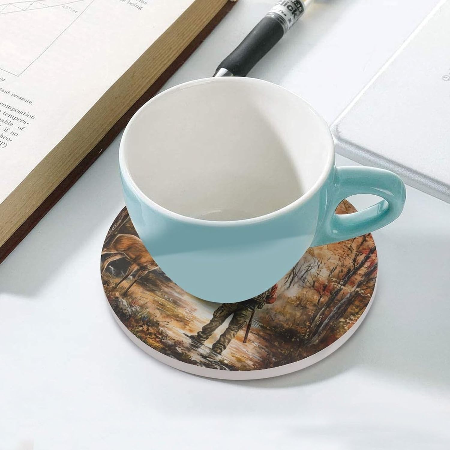 coasters,coasters set of 4,coasters set of 6,cute coasters with Funny Pattern Printed Ceramic Coasters with Cork Base Cup Holder Absorbent for Drinks Coasters Round Tabletop Protection Mat Decorative Cute Coffee Cup Beverage Coasters