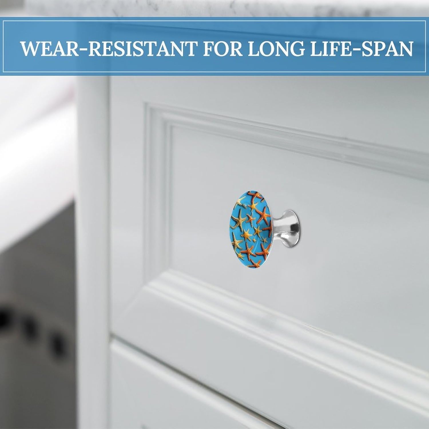 Blue Background with Many Starfish Drawer Pulls 1.1 Inch Kitchen Cabinet Knobs Solid Round Dresser Drawer Knobs Matte Dresser Knobs Drawer Knobs Simple Cabinet Hardware for Cupboard Drawer Pulls Perfect Small-Scale Proportion – The 1.1" diameter creates a delicate, refined look ideal for: - Kitchen drawer fronts - DIY furniture projects - Office storage drawers - Jewelry boxes & small furniture - Bathroom cabinet door updates Easy Installation: Light weight,flat touch,very easy to install. Suit your kitchen cabinet, furniture door, cupboard, desk drawer, wardrobe drawers, shoe cabinet, chest, bookcase and more. 24-Hour After-sales Service:If you have any questions about the size or color of our handles,please feel free to contact us at any time. Our dedicated customer service helps you select products that are suitable for your cabinet door.