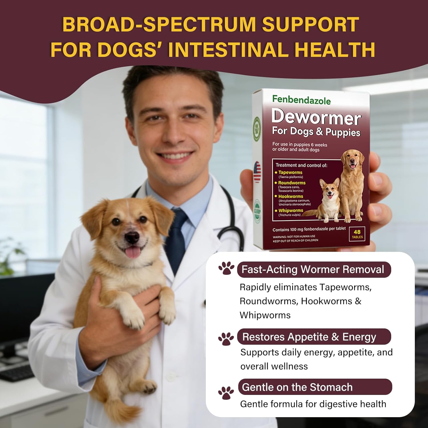 BROAD SPECTRUM DOG DEWORMER FOR COMMON WORMS - Formulated with fenbendazole, this dog dewormer helps manage common intestinal worms including tapeworms, roundworms, hookworms, and whipworms. Designed to support digestive balance and daily wellness for dogs.