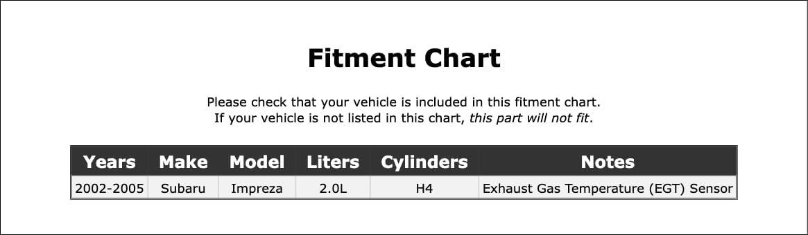 | Included Components | Exhaust Gas Temperature (EGT) Sensor |