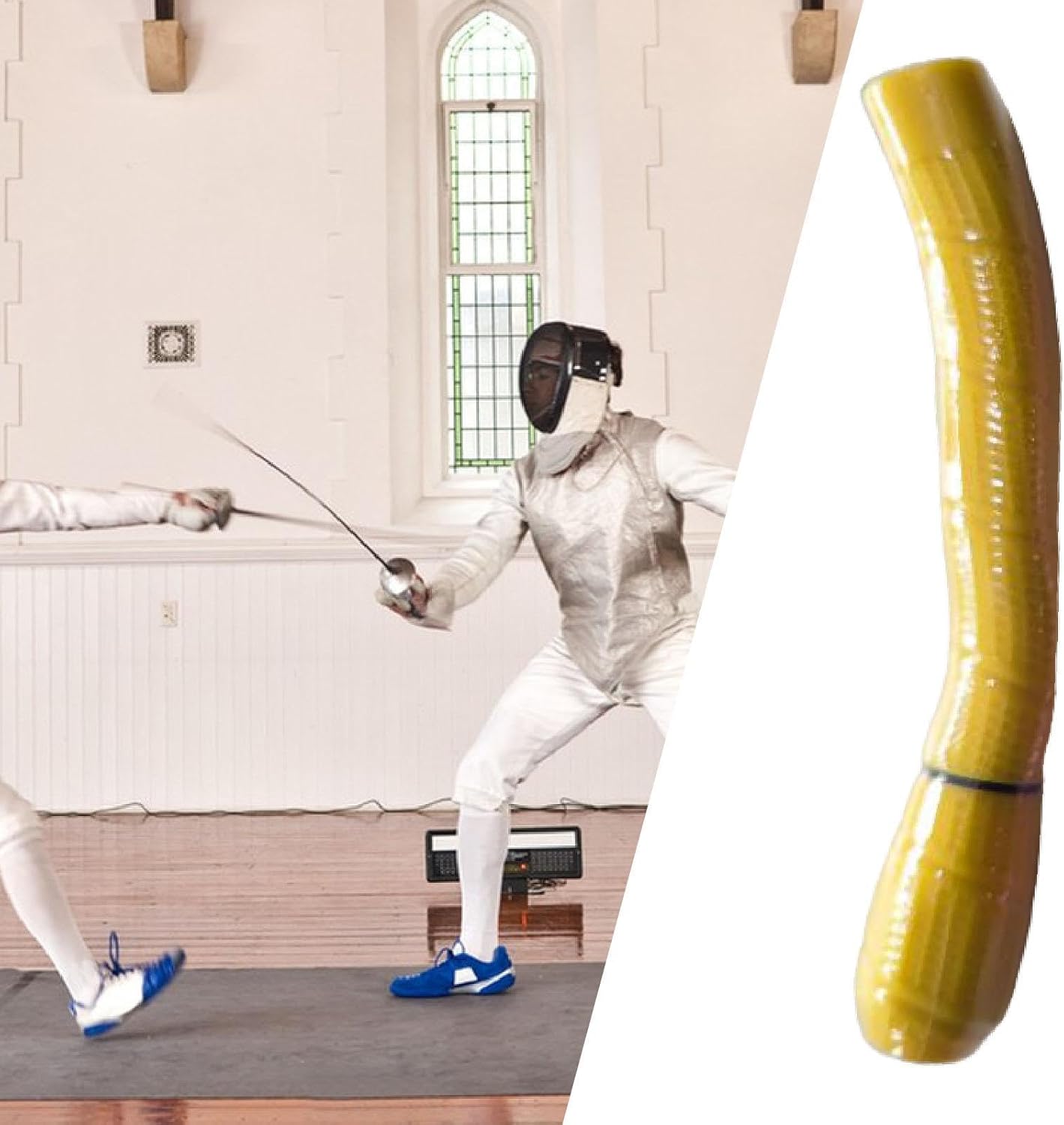 Description: - 【Versatile Compatibility】: This fencing equipment is designed for both foil and epee, making it a versatile choice for fencers who practice multiple disciplines - 【Ergonomic Design】: Featuring curved straight handle, this equipment ensures comfort during use, allowing for better grip and control - 【Sturdy Construction】: Made from premium rubber, this fencing gear is built to withstand heavy duty use while maintaining its shape and functionality over time - 【Compact Size】: With an approximate length of 18.5cm, this piece of equipment is easy to handle and store, making it convenient for both practice and competitions - 【Stylish Appearance】: The sleek design offers a modern look, combining functionality with aesthetic appearanceSpecification: - Material: RubberSize Chart:Length 18.5cm/7.28inchPackage Includes:1 Fencing HandleNote:Please allow slightly errors 1-2cm/0.39-0.79inch differences due to manual measurement.