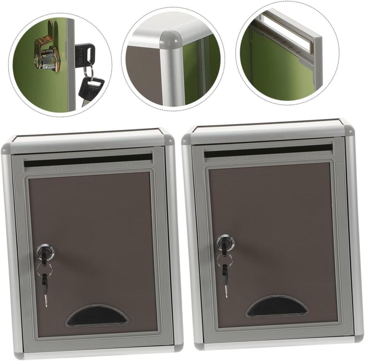 Package List 2 x Wall Mount Mailboxes with Locks Characteristics -Material:Metal wall mail box -Size:28.50X21.50X10.50cm/11.20X8.45X4.13in wall mounted mailbox -Color:As Shown wall mail box with lock - Features simple appearance design and workmanship, our mailbox is suitable for many places wall mount mailbox with lock. - Made of selected metal material, this mailbox is durable and sturdy for suggestion box. - Simple style mail box, it can be installed easily and convenient to take out your letter metal wall mail box. - Not only as a household letter box, it also can box, postbox, with and lock wall mail box with lock. - Versatile to use, can be used as a practical mailbox for home, company, simple and convenient to use metal wall mailbox with lock.Goods Descriptionwall mailbox with lock The simple design makes it more unique and stylish.wall mount mailbox The mailbox is well polished, no burrs and does not hurt hands when used.wall mounted mailbox with lock Made of metal material, the mailbox is durable with and simple appearance.metal wall mailbox with lock Suitable capacity for storing envelopes, newspaper, letter of complaint
