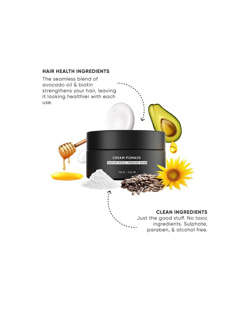 Elevate your everyday styling routine with Dasher Men's Cream Pomade. This medium hold, medium shine formula is designed to give you the perfect balance of control and natural-looking finish, making it ideal for a wide range of hairstyles. The water-based formula creates excellent separation and definition, allowing you to sculpt and shape your hair with ease. Enriched with a powerful blend of avocado oil and biotin, this cream pomade doesn't just style — it actively works to strengthen your hair, leaving it looking healthier with every use. Formulated with clean ingredients only, it is completely free of sulphates, parabens, and alcohol, so you can feel confident about what you're putting in your hair. Lightweight and non-greasy, it's gentle enough for daily use without buildup or residue. Each jar contains 3.52 oz of product, giving you plenty of styling power to last. Whether you're going for a polished look or a more relaxed, textured style, Dasher Cream Pomade delivers reliable results day after day.
