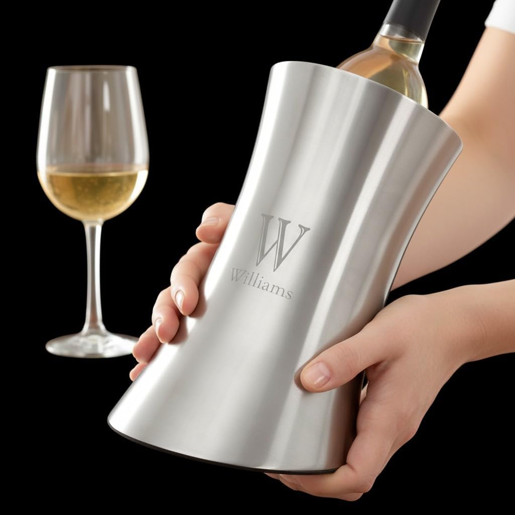 Personalization Universe Double-Walled Insulated Stainless Steel Wine Chiller with Custom Etched Monogram and Name, Perfect for Wine & Champagne, Great for Wedding, Housewarming, and Retirement Gifts