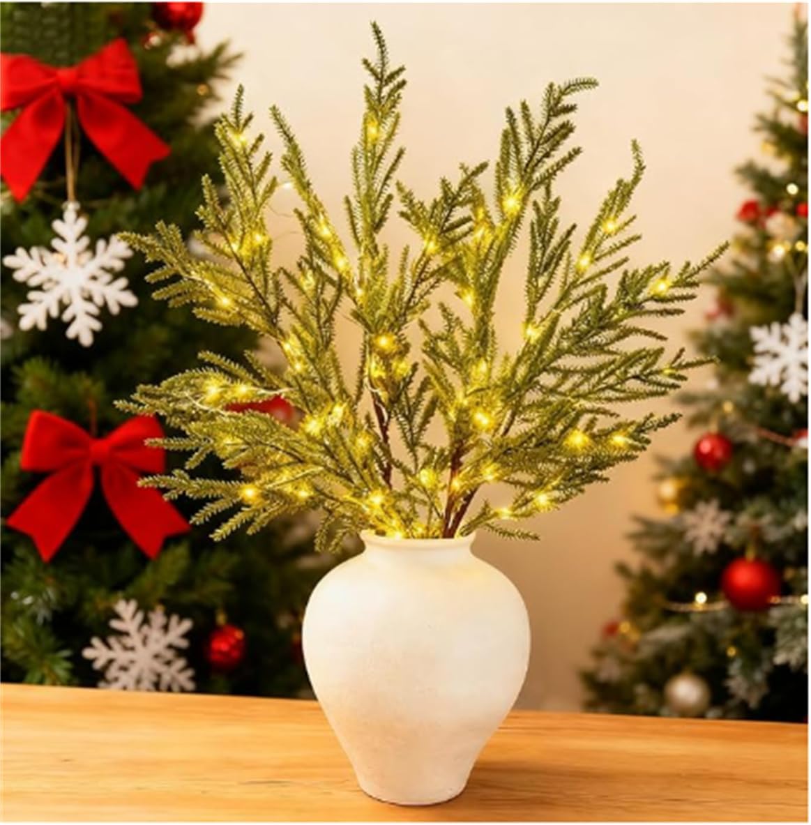 Product information Product Dimensions: 17.7*17.7in Specific Uses For Product: festive decorations,Indoor/Outdoor Usage Indoor Number of Items: 1 Item Name: Prelit Pine Stems Light String Length: 2m Package Includes: 5/10/15/20 PCS * Pre Lit Pine Stems,1 LED strip light Color:Green Net Content:57g Product description Pre-Lit Pine Stems, Lighted Norfolk Pine Branches, Realistic Norfolk Pine Stems, Christmas Artificial Pines Needles Branches Garland for DIY Wreaths, Vase Fillers, Indoor Outdoor Decor