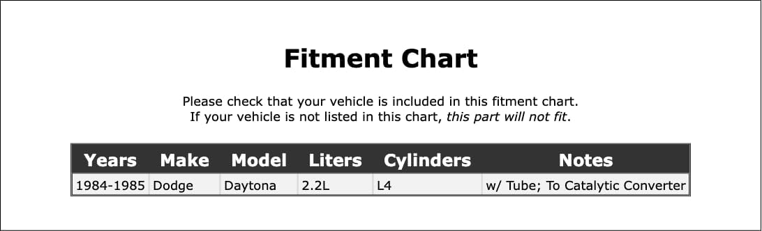 | Included Components | Secondary Air Injection Pump Check Valve |