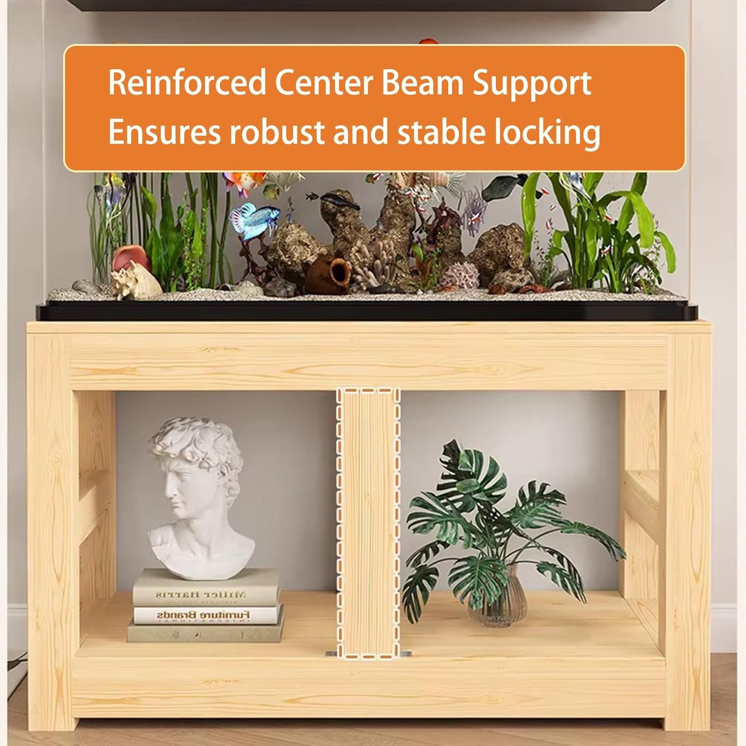 Crafted from premium solid wood with thickened, sturdy construction, practical dual-layer storage, and flexible size options, this solid wood aquarium stand is the ideal choice for supporting large aquariums. Dimensions: 100×40 cm → 39.4×15.7in, 100×45 cm → 39.4×17.7in, 100×50 cm → 39.4×19.7in, 120×40 cm → 47.2×15.7in, 120×45 cm → 47.2×17.7in, 120×50 cm → 47.2×19.7in, 120×60 cm → 47.2×23.6in. Aquarium Type: Cabinet Aquarium. Suitable: Office, Study, Dining Room, Hotel, Living Room. Note: Dimensions are measured manually and may have slight variations. Actual product dimensions prevail. Package Includes: 1× Aquarium Stand (Aquarium not included).