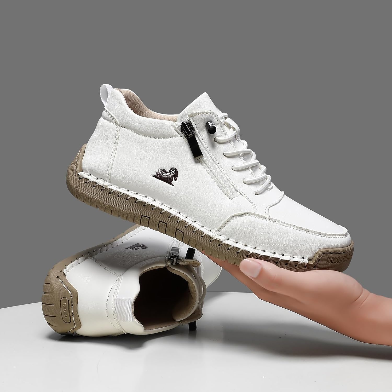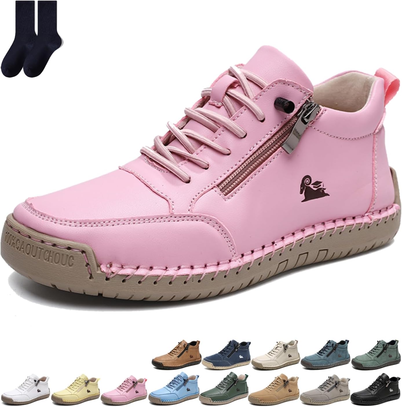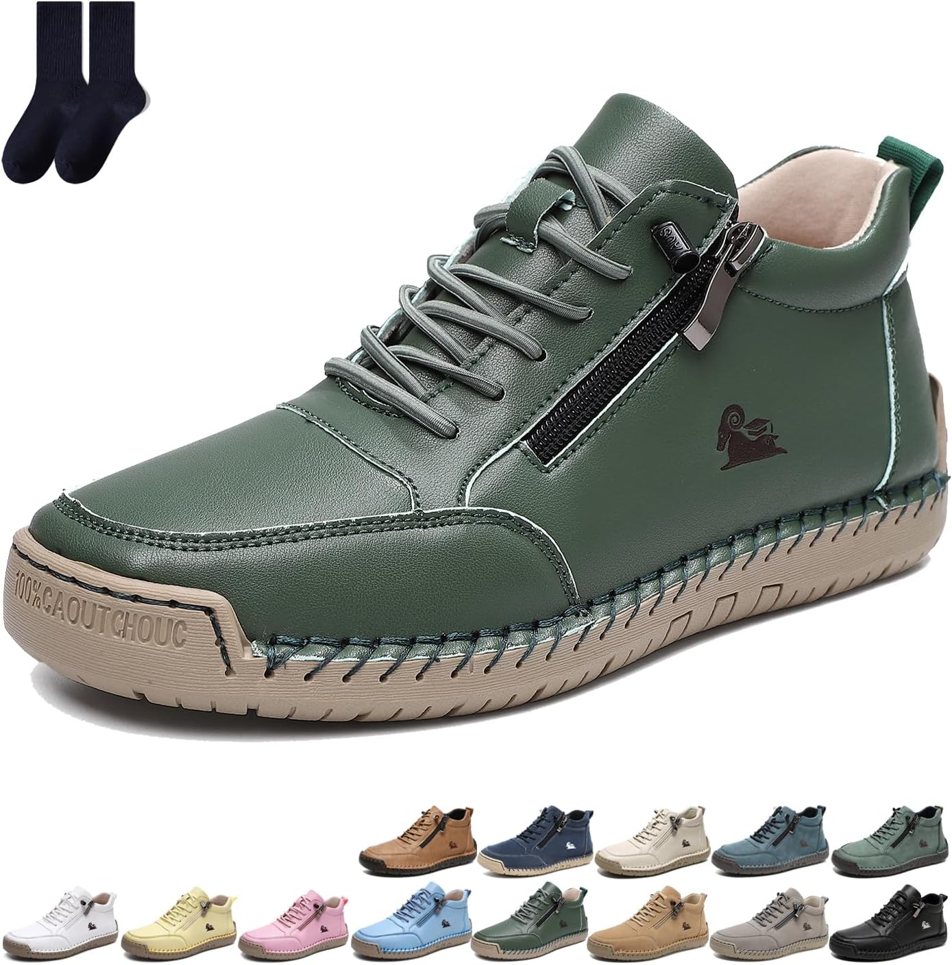 ====================✨Welcome to our store✨ ! ==================== Women's Casual Comfort Sneakers Handmade Leather Ankle Boots, Non-Slip Walking & Driving Shoes Lightweight Outdoor Slip On with Side Zipper Features: Handmade genuine leather uppers for breathable, flexible comfort Easy side zip slip-on boots for quick wear/removal Wide round toe box with support for all-day wear Ultra-lightweight design (only 1.3lbs) perfect for travel & commuting Anti-slip rubber tread grips wet surfaces & slippery floors safely Specifications: Upper Material: Microfiber Leather Insole Material: Microfiber Insole Material: Latex Outsole Material: Rubber Functions: Massage, Wear Resistance, Shock Absorption Style: Minimalist Toe Shape: Round Toe Gender: Unisex Heel Height: Heel-less (0-1cm) Suitable Seasons: Summer, Winter, Spring, Autumn ▪Package Includes: ▪1pair*Women's Handmade Leather Comfy Shoes ▪1pair*pure cotton socks Notes: ▪Due to the light and screen difference, the item's color may be slightly different from the picture. ▪Please allow slight dimension difference due to different manual measurement. ▪We are committed to providing customers with high-quality and affordable products. If you encounter any problems during your shopping, we will provide you with service all day until you are satisfied ====================✨Enjoy your shopping✨ ! ====================